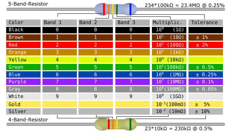 প্রতিটা রেজিস্টর এর নিজস্ব মান থাকে, এই মান এর গায়ে উল্লেখ করা থাকে। বড় আকারের রেজিস্টর এর গায়ে মান সরাসরি লেখা থাকে। ছোট আকারের রেজিস্টর এর মান গায়ে লেখা সম্ভব হয়না বা লিখলে বোঝা কষ্টকর হবে, এজন্য কালার কোড ব্যবহার করা হয়।