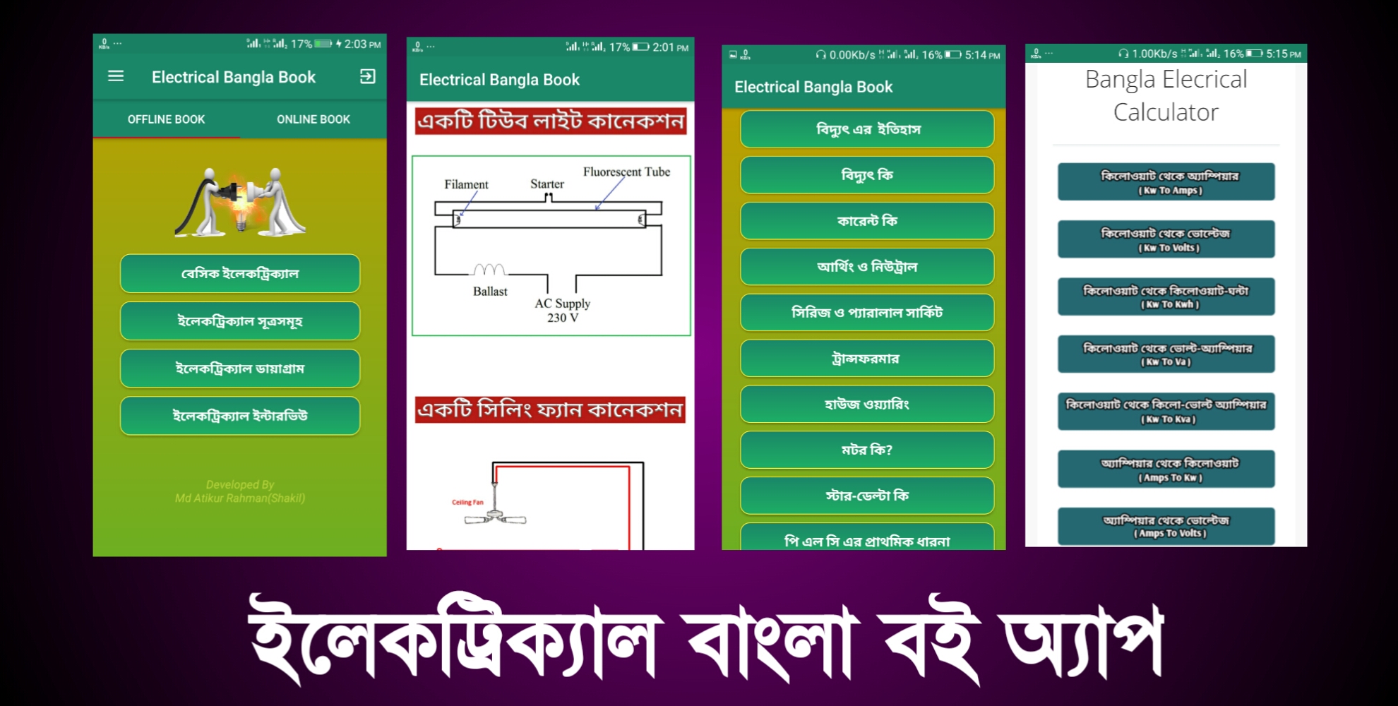 আরো ইলেকট্রিক্যাল অনেক কিছু আমাদের এই অ্যাপটি মধ্যমে জানতে পারবেন।তাই আশা করি আপনারা আমাদের এই অ্যপটি ইনস্টল করবেন।আর আপনাদের মূলবান মতামত জানাতে ভুলবেন না।