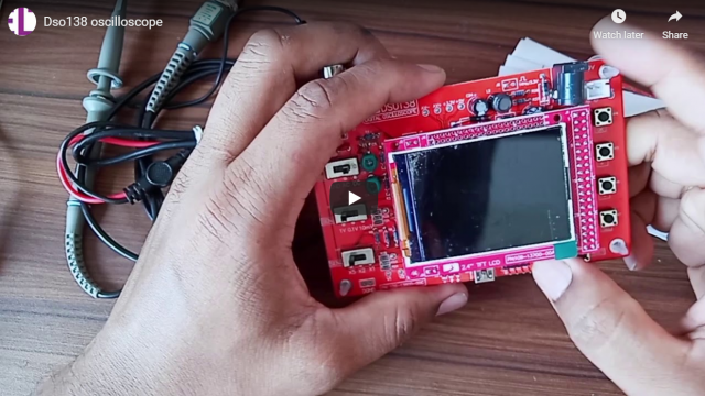 DSO138 was designed as a training oscilloscope kit. It contains only the basic oscilloscope functions with no fancy features. Simplicity in structure and easiness in assembly/operation are amongst the main highlights of the design. For these purposes, DSO138 uses mostly through-hole parts. The heart of DSO138 is a Cortex-M3 ARM processor (STM32F103C8) from ST. It uses a 2.4-inch TFT LCD (320 X 240 dotmatrix, 262K colors) that displays crisp and clear waveforms. DSO138 is partially open-sourced. This opens the possibility for users to add different features or develop new applications on the hardware. Major features of DSO138: Analog bandwidth: 0 – 200KHz Sensitivity: 10mV/Div – 5V/Div Sensitivity error: lessthen 5% Vertical resolution: 12-bit Timebase: 10us/Div – 500s/Div Record length: 1024 points Built-in 1KHz/3.3V test signal Waveform frozen (HOLD) function available Save/recall waveform