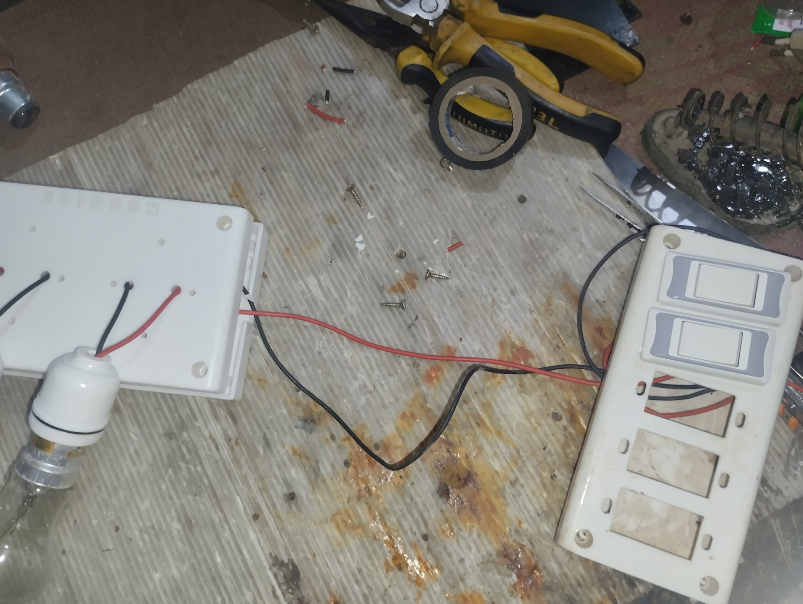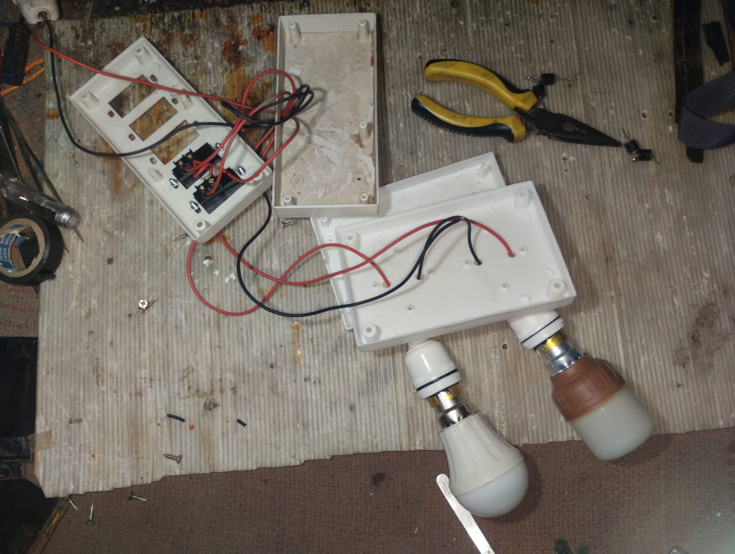 কানেকশন করার আগে আপনাদের একটা ঘটনা বলি। বেশ কিছুদিন আগে আমি আমাদের গ্রামের একজনের বাসায় ইলেকট্রিকের কিছু কাজের জন্য গিয়েছিলাম। বাড়ির মালিক বলে, আমার এখানে একটা বাল্বের লাইন করা আছে। কিন্তু এর সাথে আরেকটা বাল্বের লাইন দরকার। এর আগে কয়েকজন টেকনিশিয়ান কে দেখিয়েছিলাম। তারা বলেছিল, সুইচ বোর্ড থেকে হোল্ডার বোর্ড পর্যন্ত দুটি তার টানা আছে। দুটা বাল্ব জ্বালালে ন্যূনতম তিনটা তার টানা থাকতে হবে। কিন্তু এখানে বিষয় হলো, এর আগে যে কাজটা করছে সে এমন ভাবে করেছে, যে নতুন করে কোন তার ঢুকানোর অপশন নাই বা ওই দুইটা তার বের করারও কোন অপশন নাই। একদম ফিক্সড মনে হয় সে পাইপ ছাড়াই ওয়ালের ভিতর দিয়ে তার ঢুকিয়েছে। এখন যদি দুইটি বাল্ব জ্বালানোর প্রয়োজন পড়ে, তাহলে বাহির দিয়ে একটা এক্সট্রা তার টানতে হবে, না হলে প্লাস্টার কেটে নতুন করে লাইন করতে হবে। কিন্তু বাড়ির মালিক বাহির দিয়ে তারও টানতে দিবেনা এবং প্লাস্টারও কাটতে দিবে না। তাই ওইসব টেকনিশিয়ান দিয়ে কাজ করে নেয়নি। সে অনেকদিন পর বিষয়টা আমাকে জানায়, আমি কিছু করতে পারি কিনা। আমি গিয়ে দেখলাম পাইপ থেকে তার টেনে বের করা কোন ভাবে সম্ভব না নতুন করে ঢুকানো সম্ভব না। আমাকে যা কিছু করতে হবে এই দুই তারের মাধ্যমেই করতে হবে। তাই অনেক চিন্তাভাবনার পর এই কানেকশনটা বের করলাম। খুব সুন্দর ভাবে এখনো কাজ করতেছে। তাই আপনাদেরও যদি এইরকম কোন দরকারে আসে, তাহলে এই নিনজা টেকনিকটি কাজে লাগাইতে পারেন। এতে করে তারের খরচ কিছুটা হলেও কম হবে।