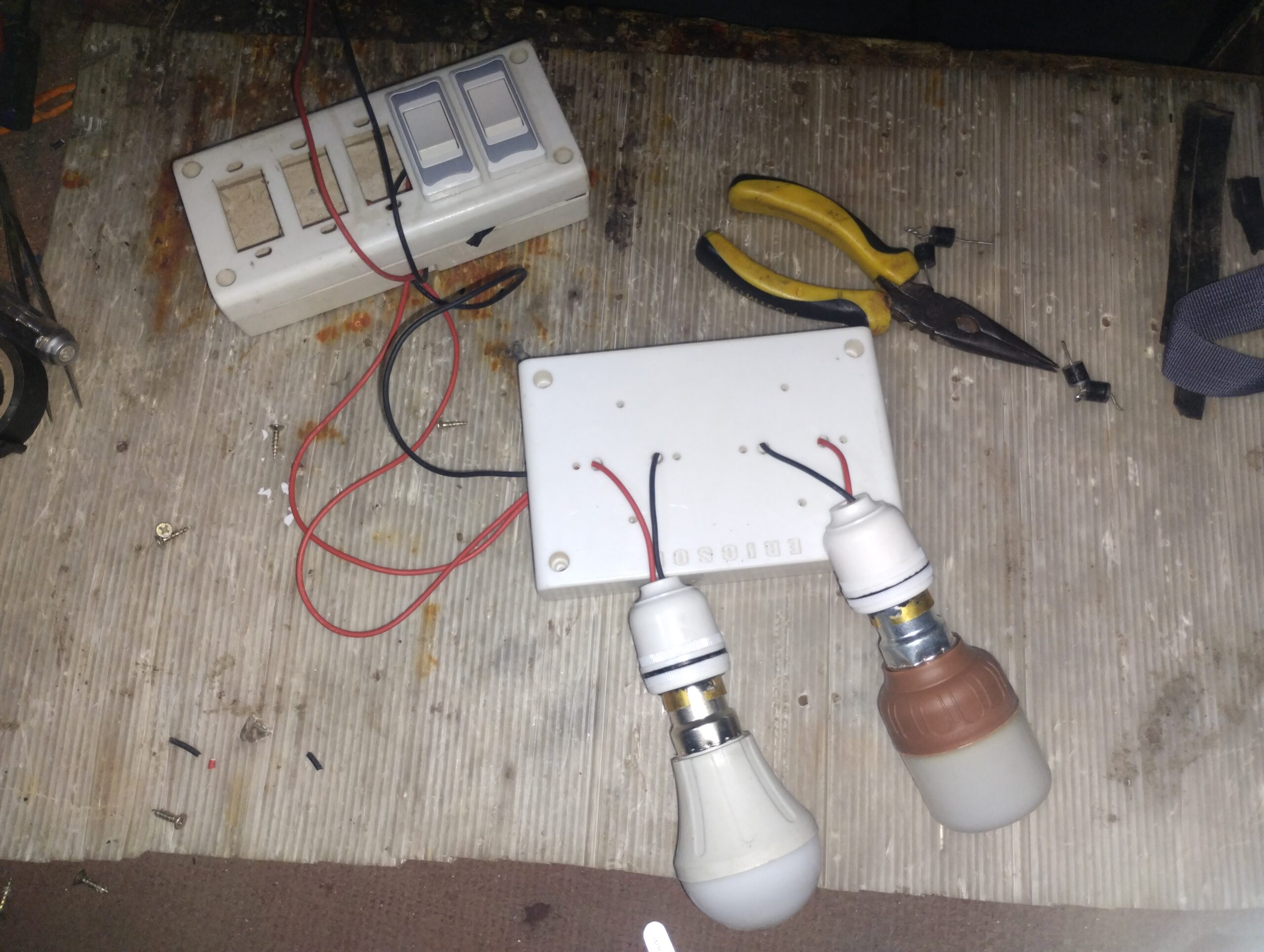 আমরা তিনটা তার দিব না। আমরা শুধুমাত্র দুইটা তার দিয়ে দুই বাল্ব কে দুই সুইচের মাধ্যমে আলাদা আলাদা ভাবে নিয়ন্ত্রণ করবো। কাজটা কিন্তু সেম তিন তারের কানেকশন এর মতোই করবে। মানে একটা সুইচ দিয়ে একটা বাল্ব চালু বন্ধ হবে, আরেকটি সুইচ দিয়ে আরেকটা বাল্ব চালু বন্ধ হবে। অর্থাৎ সাধারণ বাসাবাড়িতে যেভাবে কানেকশন হয় সেভাবেই কাজ করবে, কিন্তু সুইচ বোর্ড থেকে হোল্ডারবোর্ড পর্যন্ত তিনটি তার নয় দুটি তার দিতে হবে।