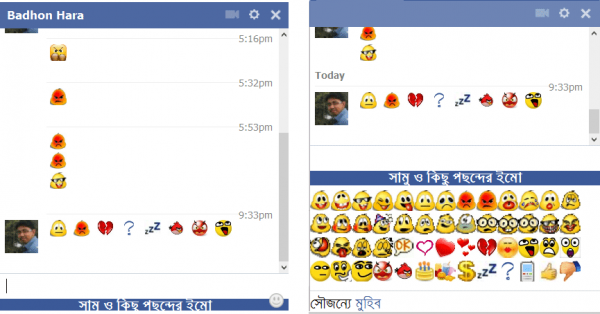 * সমস্যাঃ ইমোটিকন বার বন্ধ না করে চ্যাট বার বন্ধ করলে একটু সমস্যা হয়।