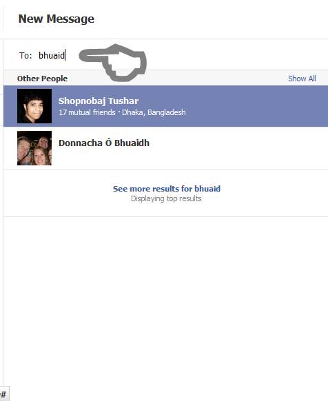 একটা বিষয়ঃ যদি ইউজার এর প্রফাইলে 'ম্যাসেজ' অপশন' থাকে অর্থাৎ যদি দেখেন ইউজার আপনার ফ্রেন্ড লিস্টে নাই কিন্তু 'Message' অপশন আছে তবেই কেবল এই পদ্ধতি কার্যকর হবে। অর্থাৎ যেই ফেবু ব্যবহারকারীকে ইনবক্স ম্যাসেজ পাঠাবেন, সে যদি তার ফ্রেন্ড লিস্ট বহির্ভূত ইনবক্স ম্যাসেজ পাঠানোর সম্মতি দেন তবেই তা কাজ করবে। অনেক ফেবু প্রফাইলে দেখা যায় যে ম্যাসেজ অপশন ডিজেবলড সেই ক্ষেত্রে ইহা কার্যকর নাও হতে পারে।