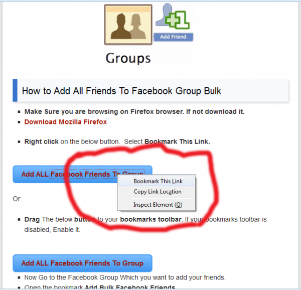 এখানে নিচের চিত্রের মত “Add All Friends To Facebook Group” নামে ব্লু কালারের একটি বাটন দেখবেন।