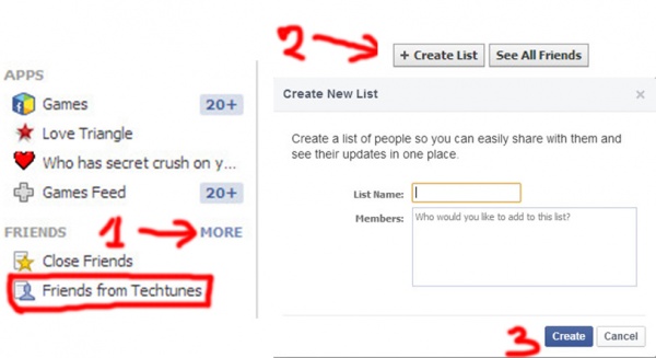 ছিবিতে মার্ক করে দেওয়া আছে এভাবে কাজ করলে একটা নতুন লিস্ট হবে। যেমন আমি বানিয়েছি Friends from Techtunes নামে। এই লিস্টে শুধু তারাই থাকবে যারা TT ব্যাবহার করে। এই লিস্টে ক্লিক করলে আমি শুধু টেকটিউন্সের বন্ধুদের পোস্ট দেখতে পারবো। আমি কোন পোস্ট করলে শুধু টেকটিউন্সের বন্ধুরা দেখবে। তাহলে আর গ্রুপের দরকার আছে। লিস্ট থেকে আপনি চাইলে কাউকে বাদ দিতে পারেন বা নতুন কাউকে অ্যাড করতে পারেন।