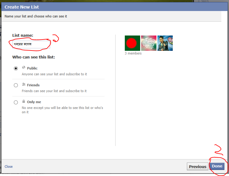 এবার list name এ আপনার পচন্দ মত (উদাহরন সরুপ: খবরের কাগজ) নাম দিন।