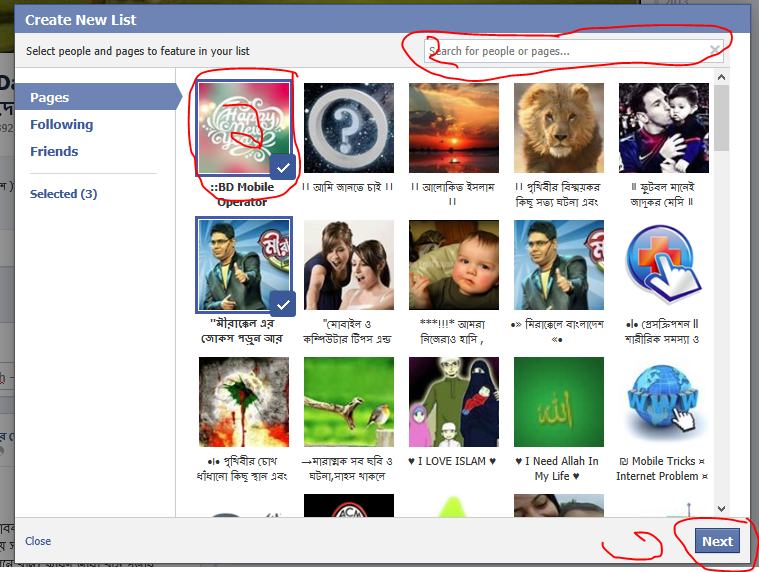 উপরে সার্চ বক্সে আপনার পচন্দমত পেজের নাম দিয়েও সার্চ করে নির্বাচন করতে পারবেন।