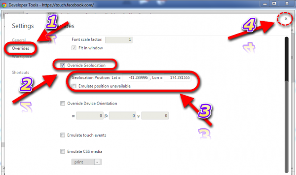 খ) Check/Enable ক্লিক করুন তারপর " Override Geolocation" এ ক্লিক করে
