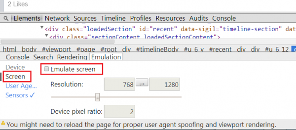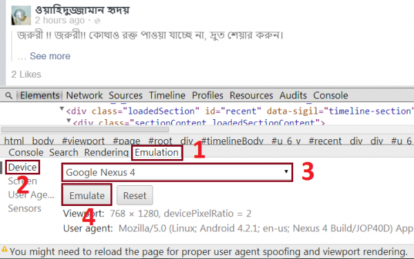 এবার সেখান থেকে "Emulation" এ যান। এবং "Divice" থেকে "google nexus 4" অথবা যে কোন একটা টাচ মডেলের সেট সিলেক্ট করুন।