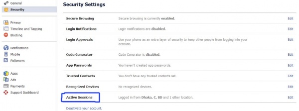 4. active sessions এ ক্লিক করুন, নিচে দেখুন....................