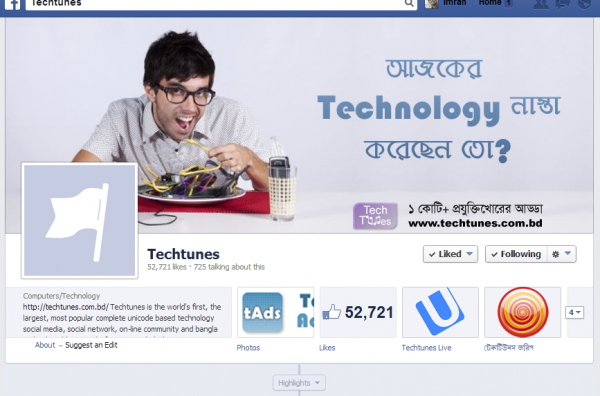 নিচে টেকটিউনসের ফেসবুক পেজের উদাহরণঃ