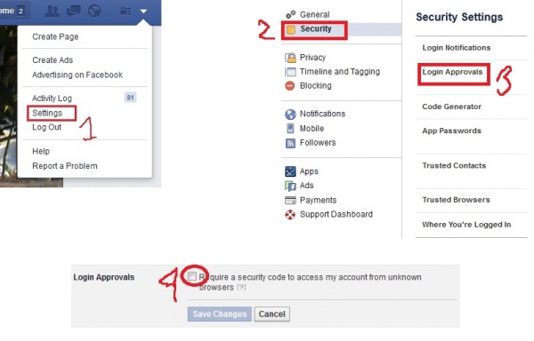 ১। Setting ২। Security ৩। Login Approvals ৪। Require a Security Code এ ক্লিক করুন।