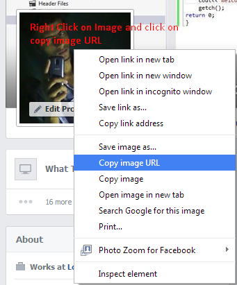 প্রথমে যার প্রোফাইল Picture পুরোটা দেখতে চান তার Profile Picture এ মাউসের ডান বাটনে ক্লিক করুন ।