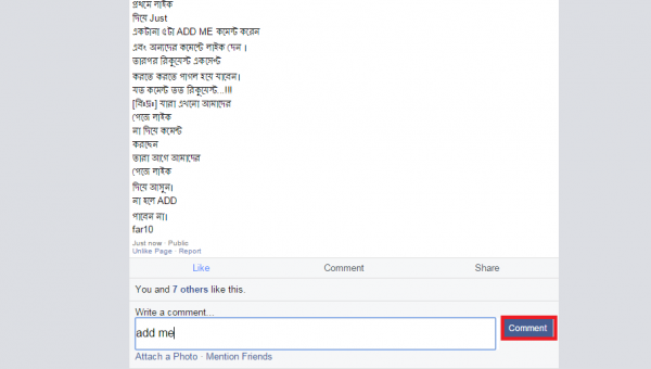 ৩। এইবার একসাথে ৮-৯ বার কমেন্ট বক্স এ ক্লিক করুন ! থামবেন না!