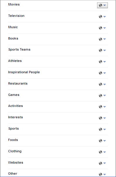 ৩। এবার বিভিন্ন ক্যাটেগরির যেগুলো আপনি লুকিয়ে রাখতে চান তা Public বা গ্লোব চিহ্নিত স্থানের ড্রপডাউনে ক্লিক করে Only Me বা তালা চিহ্নবিশিষ্ট করে দিন।