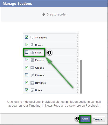 ২। এবার Likes ব্যতীত অন্য যা যা চান সেগুলোতে টিক দিন। এরপর Save করুন।