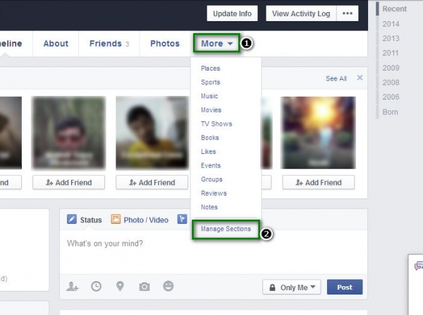 ১। আপনার প্রফাইলের More থেকে Manage Sections-এ যান।