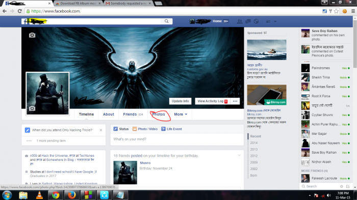 এরপর ফেসবুকে লগিন করুন। ফেসবুক প্রোফাইলে গিয়ে Photos এ যান।