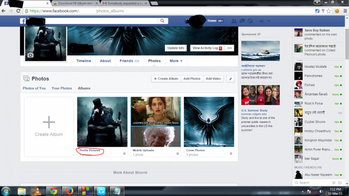 কোন এলবামটি নামাতে চান সেখানে ঢুকুন। যেমন এখানে আমি আমার পুরো প্রোফাইল পিকচার এলবামটি ডাউনলোড করতে চাচ্ছি। তাই আমি প্রোফাইল পিকচার এলবামে ঢুকছি।