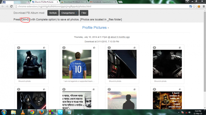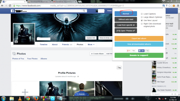 আসুন আজ দেখি কিভাবে ফেসবুক এর পুরো এলবাম একসাথে ডাউনলোড করা যায়...। 🙂 এ বিষয়ে টেকটিউনসে আরও টিউন করা হয়েছে তা আমি জানি। কিন্তু সেসব পদ্ধতির অধিকাংশই বিভিন্ন অন্য ওয়েবসাইট এর সাহায্যে করতে হত। এখন সমস্যা হচ্ছে সেসব ওয়েবসাইট কিছুদিন পরেই ডেড হয়ে যায়। :-p আজ আমরা একটূ অন্য কিন্তু নির্ভরযোগ্য পদ্ধতিতে ফেসবুকের পুরো এলবাম ডাউনলোড করা শিখব। 😀