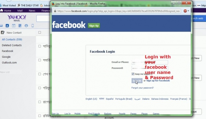 চলুন শিখে নেই কিভাবে ফেসবুক ফ্রেন্ড লিস্টের সকল ফ্রেন্ড এর ইমেইল এড্রেস বের করবেন । প্রথমেই বলে রাখি এর জন্য আপনার একটা ইয়াহু মেইল এড্রেস থাকতে হবে ।