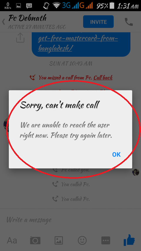 দুক্ষের বিষয় কাউরেই কল দিতে পারিনা। কল দিলেই লেখা আসে sorry can't make call.we are unable to reach the user right now.plese try again leter.