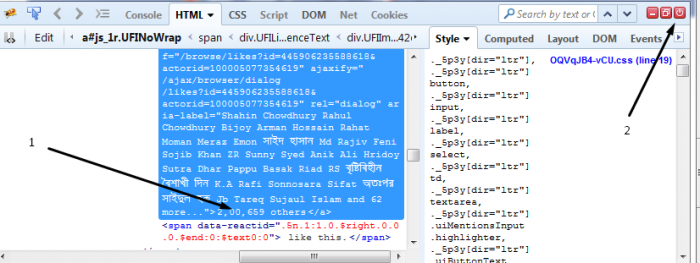 চলুন তাহলে শুরু করা যাক, প্রথমে মজিলা ব্রাউজারে firebug নামের add on টি download করে নিন এখান থেকে, তারপর ইন্সটল দিন, এখন ফেসবুক এর যেকোনো টিউন বা ফটো তে নিচের ছবির মত জায়গায় মাউস এর ডান বাটন ক্লিক করে Inspect element with firebug এ ক্লিক করুন।