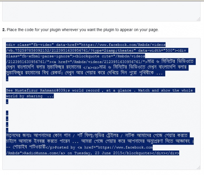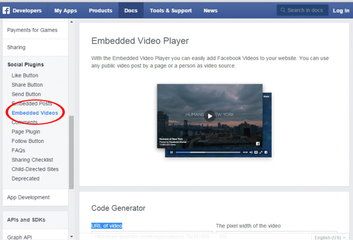 প্রথমে https://developers.facebook.com/docs/plugins জান।তার পর social plugins মেনু থেকে Embedded videos অপসনে click করুন।
