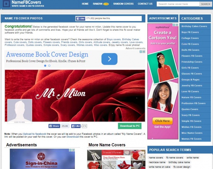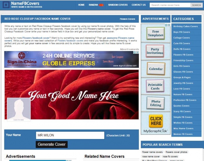 ব্যাস তৈরি হয়ে গেল আপনার নাম সহ কভার ফটো,এখন ডাউনলোড করুন।
