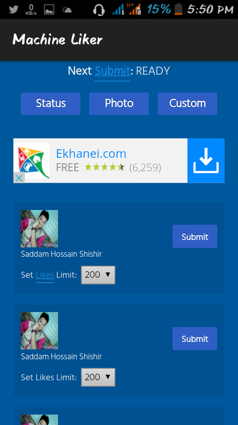 ১ম টি দিয়ে আপনি প্রতি ১৫ মিনিট পর পর সর্বোচ্চ ২০০ লাইক নিতে পারবেন এবং ২য় টি দিয়ে সর্বোচ্চ ১০০ লাইক নিতে পারবেন,,। এই দুটি এপ্স আমি প্রায় ৬ মাস যাবৎ ব্যবহার করতেছি,,। অত্যন্ত উপকারি দুটি,,। নিঃসন্দেহে এপ্স গুলা ব্যবহার করতে পারেন, এবং আমি আশা করি আপনার কষ্ট বিফলে যাবে না,,।