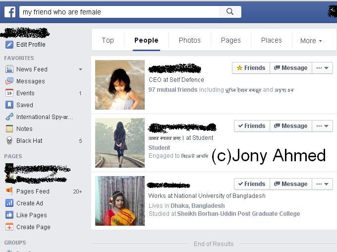 সব ফ্রেন্ডস শো নাও করতে পারে। কী-ওয়ার্ড টি একটু ভিন্নভাবে লিখে সার্চ করতে পারেন। যেমন my female friends