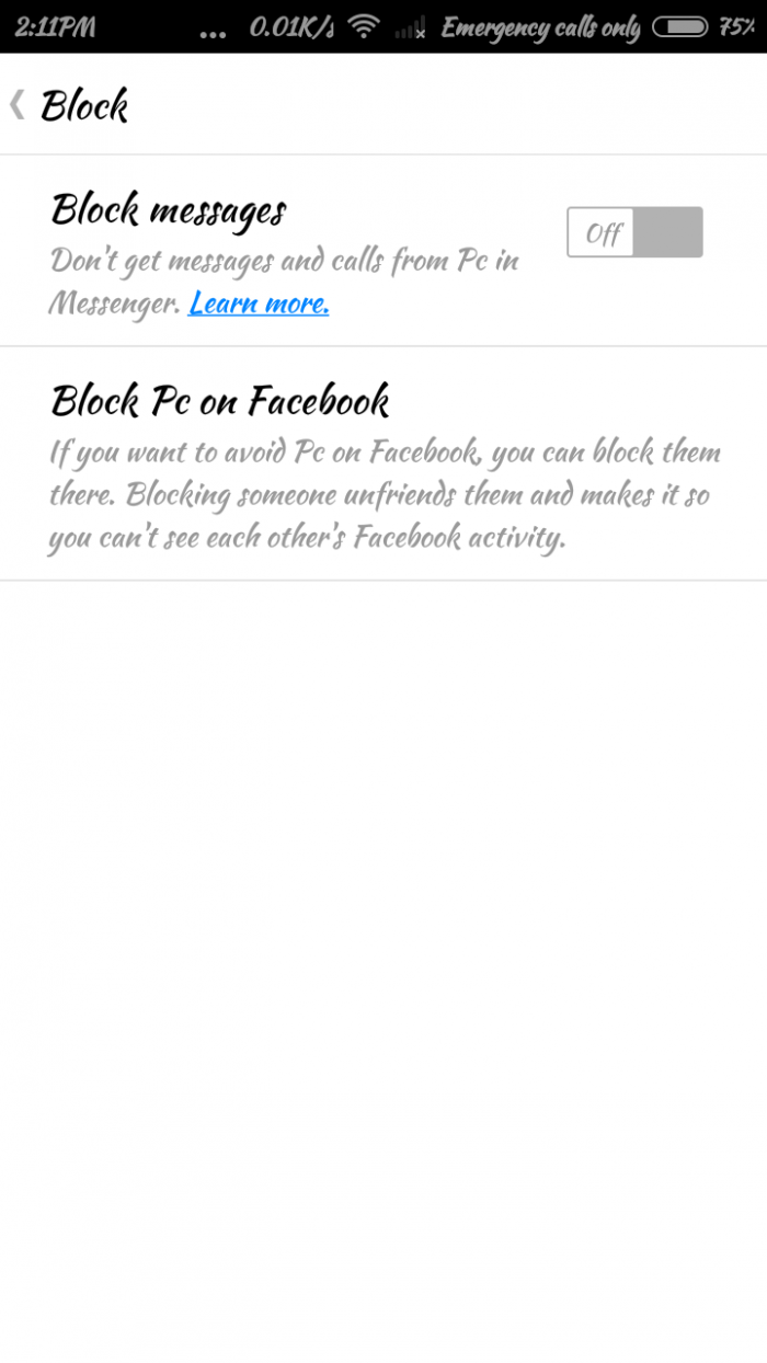 এবার দেখেন এইখানে এই রকম একটা লেখা আছে “BLOCK MESSAGES,Don’t get messeages ans calls from XXXXXX in messenger,,,,,,,Block XXXXXX on facebook,If you want to avoid XXXXXX on facebook,you can block them there.Blocking someone unfriends them and makes it so you cant see each others facebook activity”
