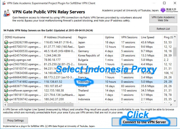 এবার যেকোন একটা Indonesia Proxy সিলেক্ট করে Connect to the VPN Server এ ক্লিক করেন।