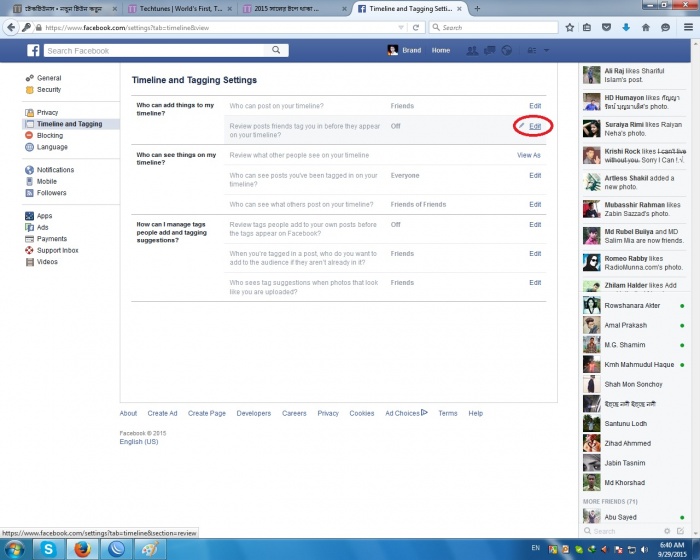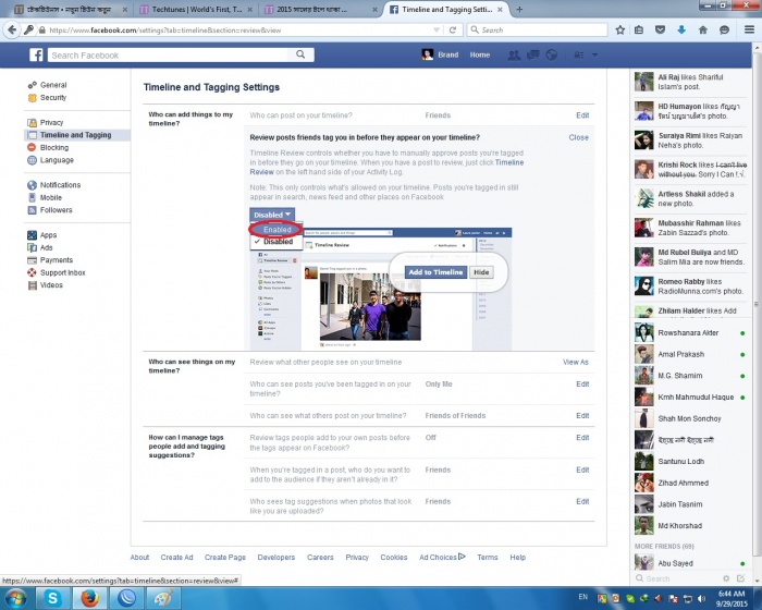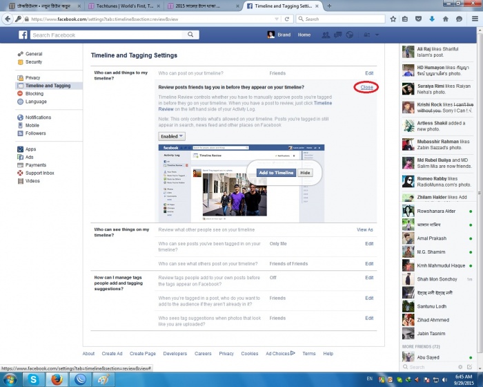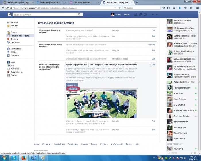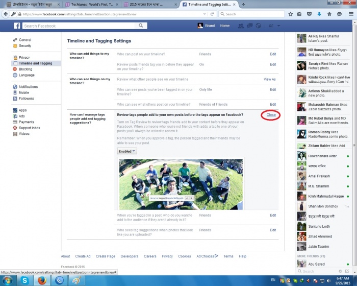 আসসালামু আলাইকুম। আশা করি আল্লাহর রহমতে সবাই ভালই আছেন। আমরা প্রাই সবাই ফেসবুক ব্যবহার করে থাকি তাই এইটা আমাদের জন্য কতোটা উপকারী তা শুধুমাত্র তারাই বুঝবে যাদের ফেসবুক আইডিতে আজেবাজে ট্যাগ করে। আমি আজ আপনাদেরকে ফেসবকুকের বিরক্তিকর সব টাইমলাইন ও ট্যাগ থেকে মুক্তি পাবার টিপস দিবো যা দিয়ে আপনি রিভিউ করতে পারবেন টাইমলাইন ও ট্যাগ। আপনার অনুমতি ছাড়া কেওই আর ট্যাগ করতে বা টাইমলাইনে টিউন করতে পারবে না।