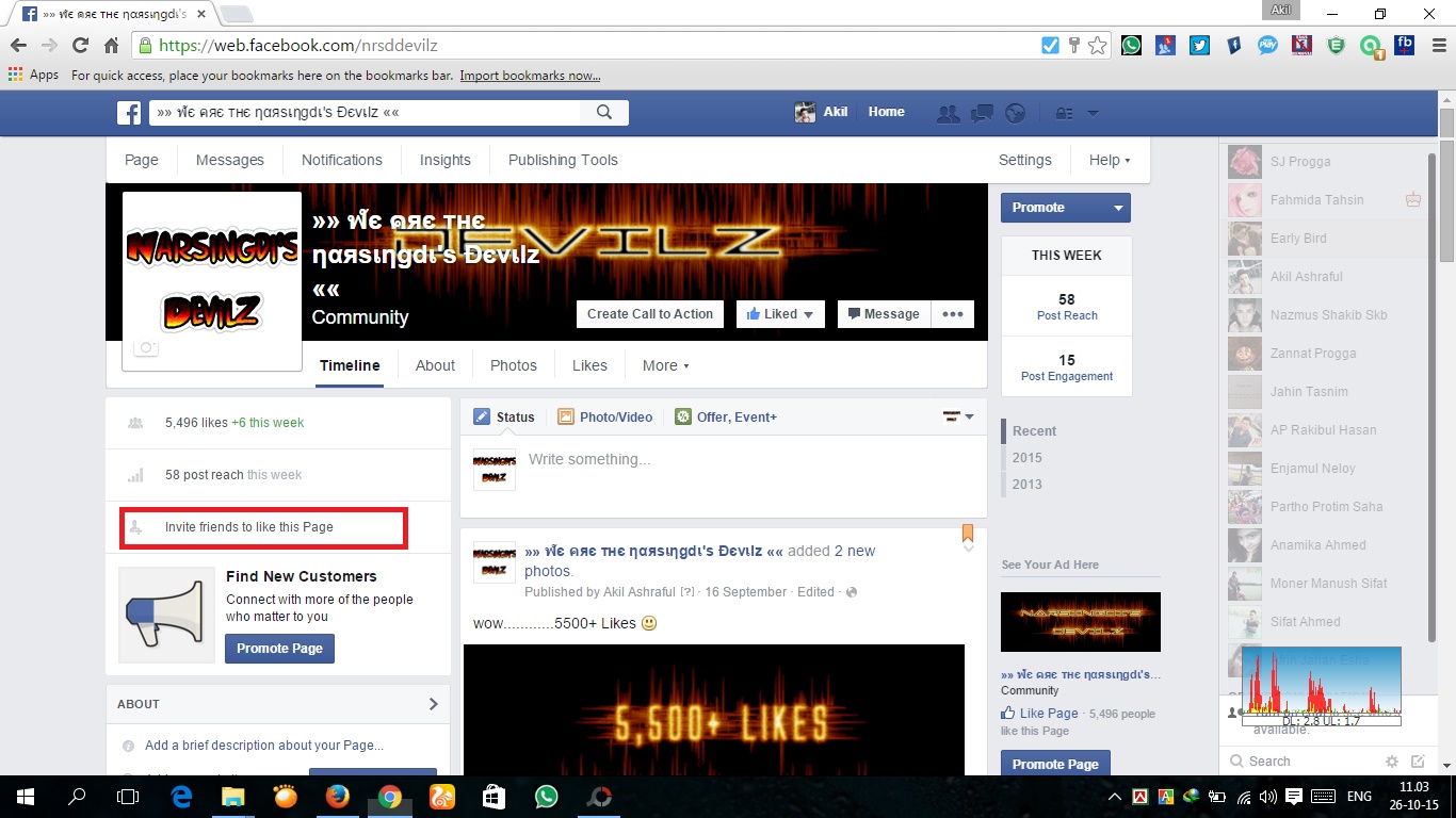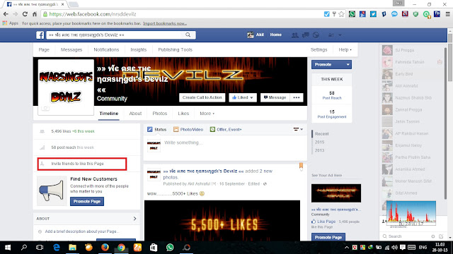 ৭. পেজে গেলে হাতের বাম পাশে দেখবেন Invite Friends To Like This Page লেখা আছে। সেখানে ক্লিক করুন।
