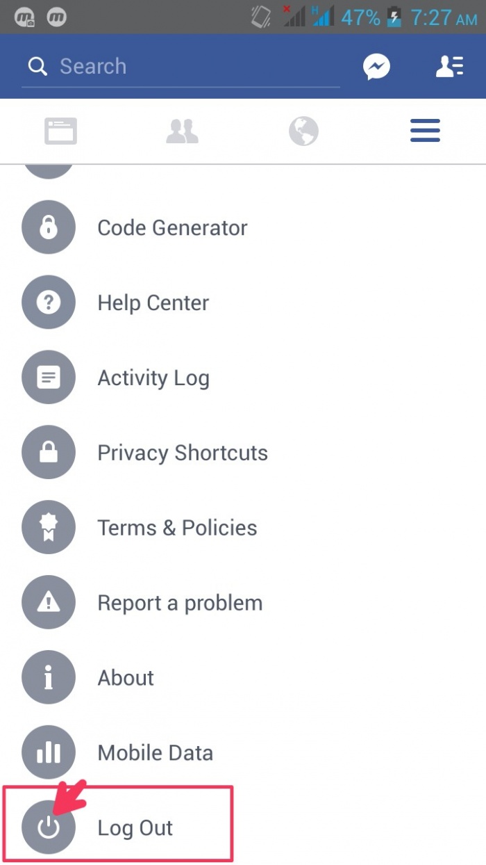 মেনুতে ক্লিক করে নিচের দিকে Log out অপশন পাবেন দেখুন