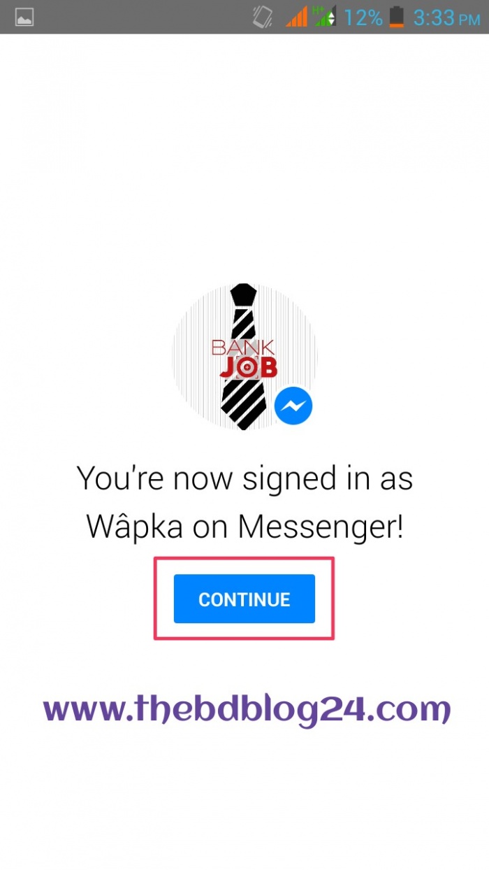 ক্লিক করার পর আপনাকে একটু লোডিং পেজে অপেক্ষা করতে হবে। আর যদি স্পিড ভালো থাকে তবে অপেক্ষা করতে হবেনা। তারপর আপনি সাকসেসফুল ভাবে লগইন করলে Continue আসবে সেখানে ক্লিক করুন। দেখুন নিচের চিত্রে