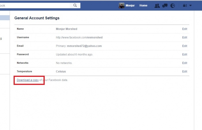 সেটিং এ যাওয়ার পর Dowanload a copy এই রকম একটি লিংক পাওয়া যাবে। নিচের পিকচার টি দেখুন।