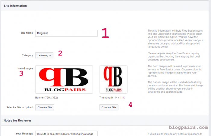 ফর্মের ১ নম্বার ঘরে আপনার সাইটের নাম দিন। ২য় ঘরে ক্যাটাগরি, তৃতীয় ঘরে ব্যানার, এবং চতুর্থ ঘরে লোগো দিন। না ভাই কাজ শেষ হয়নাই। কাজ মাত্র শুরু। এবার নিচের ঘরে যান।