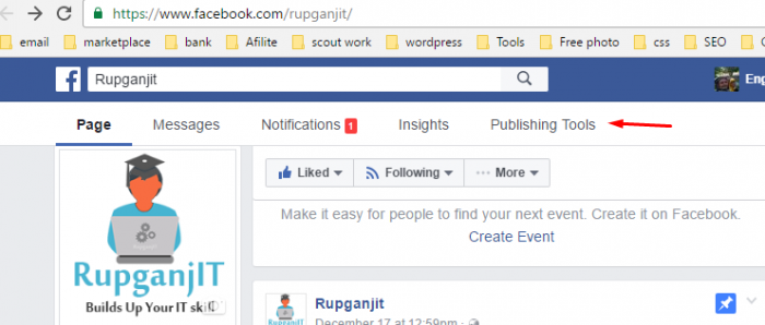 প্রথমে আপনার facebook পেজে যান এবং Publishing Tools ক্লিক করুন