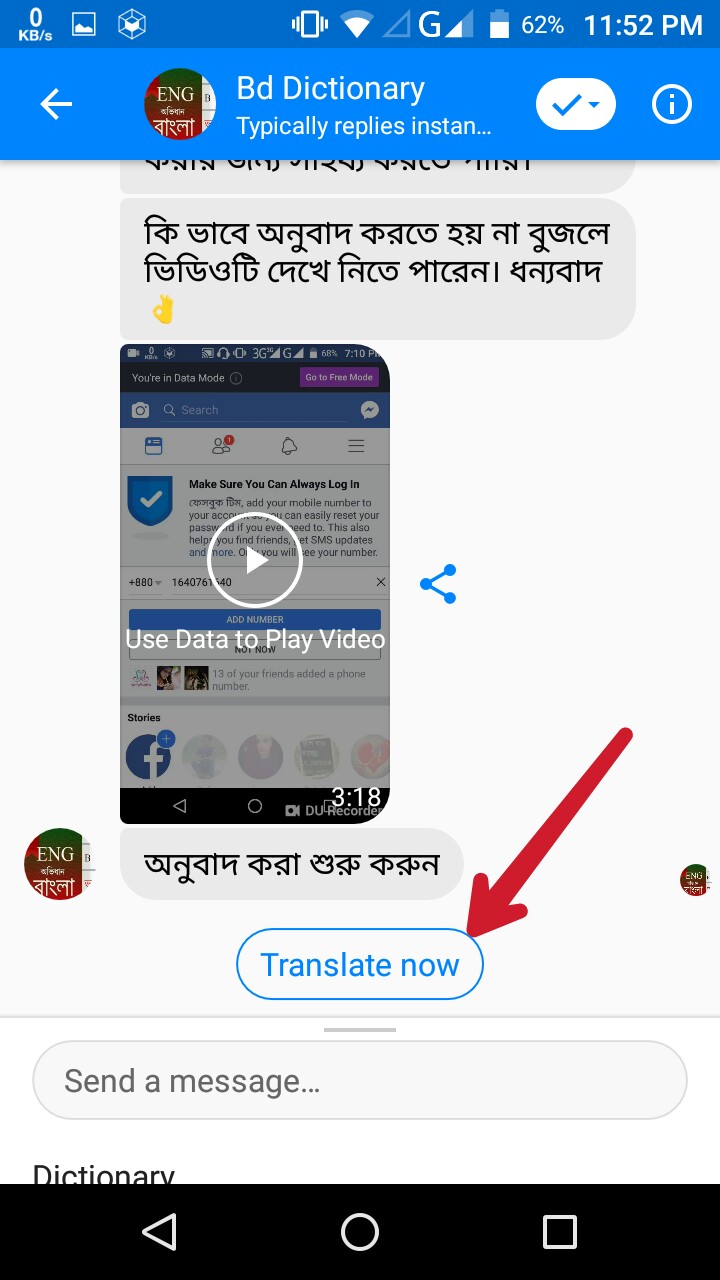 ৪.এবার দেখবেন বট টি অটোমেটিক আপনাকে ম্যসেজ দিবে। এরপরও একটি ভিডিও দিবে কিভাবে বট টি ইউজ করতে হয়। আমার টিউনটি যদি না বুজেন তাহলে ঐ জায়গা থেকে ও ভিডিও টি দেখতে পারেন। যায়হোক এখন আমরা ট্রান্সলেট করার জন্য translate now বাটন টি ব্যবহার করুন।