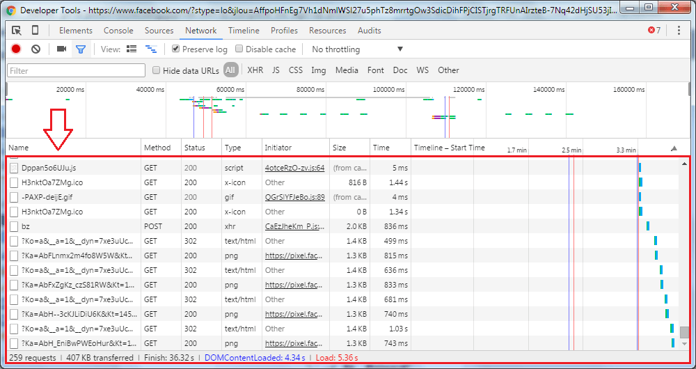 ৬) বন্ধুটি লগআউট করে ফেললে এবং সে চলে গেলে এবার আপনার পালা হ্যাকটি সম্পূর্ণ করার। মিনিমাইজ করা Developer Tools অপশনটিকে ম্যাক্সিমাইজ করে নিন। এবার উইন্ডোটিতে তাকালে দেখবেন যে এর ভিতর অনেকগুলো এন্ট্রি চলে এসেছে।