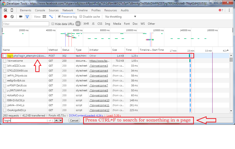 ৭) এবার আপনাকে এই এন্ট্রিগুলোর থেকে একটি এন্ট্রিকে খুঁজে বের করতে হবে। এর জন্য CTRL + F চাপুন। এতে উইন্ডোটিতে সার্চ বক্স আসবে। সার্চ বক্সে লিখুন login.php এবং এন্টার দিন, আপনাকে লগইন এন্ট্রিকে পয়েন্ট আউট করে দিবে।