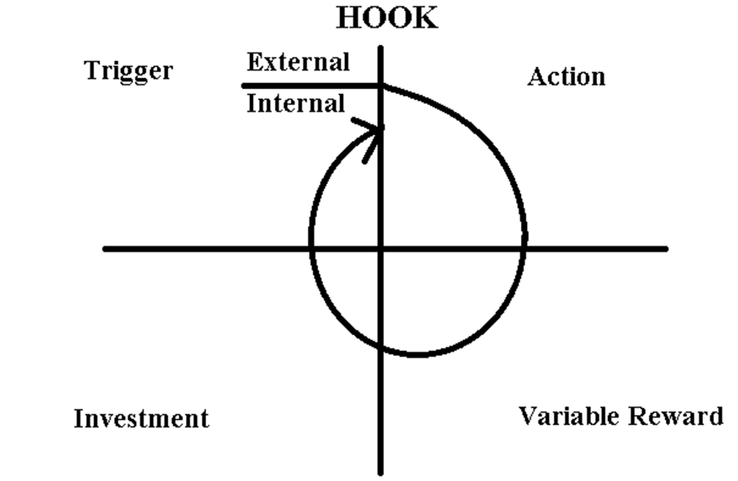 এই অভ্যাস মডেলের নাম হলো "HOOK" মডেল। এই মডেল ব্যাখ্যা করে কেমন করে একটা ব্যবস্যা বদলায় user র ব্যবহারের সাথে এবং তৈরি করে একটা অভ্যাস যেটা প্রোডাক্ট বিক্রী করতে সাহায্য করে। এই মডেলের প্রধান নীতি হলো ব্যবস্যা যাতে user র সমস্যার সমাধান করতে পারে এবং খুবই তাড়াতাড়ি যাতে সমাধান করতে পারে আর বারবার যাতে করতে পারে, তাহলে একটা অভ্যাস তৈরি হয়ে যাবে।