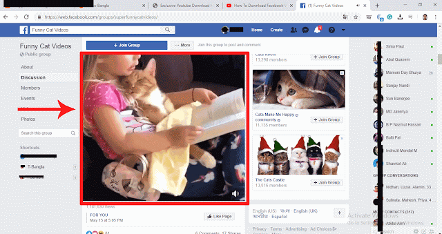 প্রথমে আপনি আপনার Facebook টি Login করুন এবং যে ভিডিওটি ডাউনলোড করতে চান সেই পেজে যান। নিচের চিত্রটি লক্ষ্য করুন- এখানে লাল বক্সটি আমার নির্বাচনকৃত ভিডিও এবং এখন এই ভিডিওটি আমি ডাউনলোড করে আপনাদের দেখাবো।