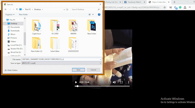 এখন আপনার সামনে নিচের চিত্রের মত একটি বক্স Open হবে, এখানে ভিডিওটি আপনি কোথায় সংরক্ষণ করে রাখবেন সেই ফাইলটি দেখিয়ে দিতে হবে। ফাইলটি দেখিয়ে দিয়ে Save বাটনে ক্লিক করুন তাহলে আপনার ভিডিওটি ডাউনলোড হয়ে যাব।