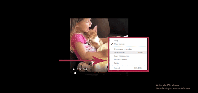 ভিডিওটির উপর ক্লিক করার সাথে সাথে নিচের চিত্রের মত দেখাবে, এখান থেকে Video টির উপর Right বাটন ক্লিক করে Save video as এ ক্লিক করে ভিডিওটি ডাউনলোড করতে হবে।