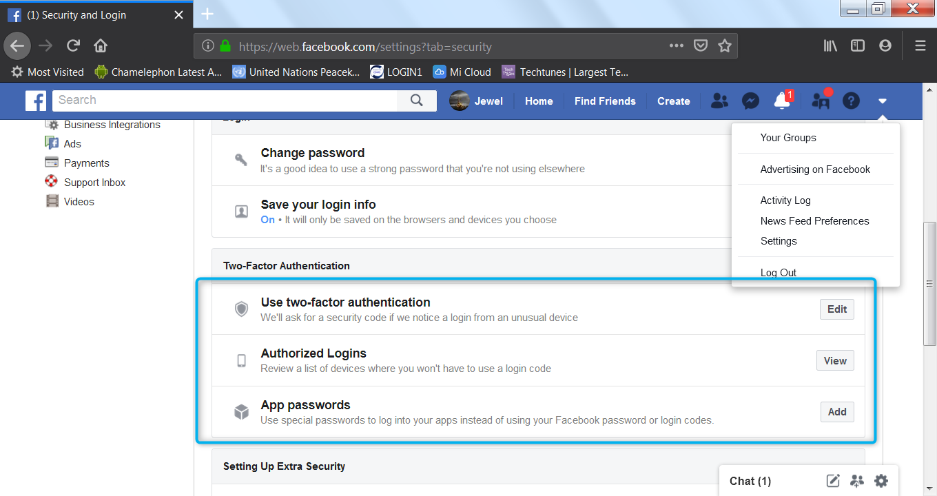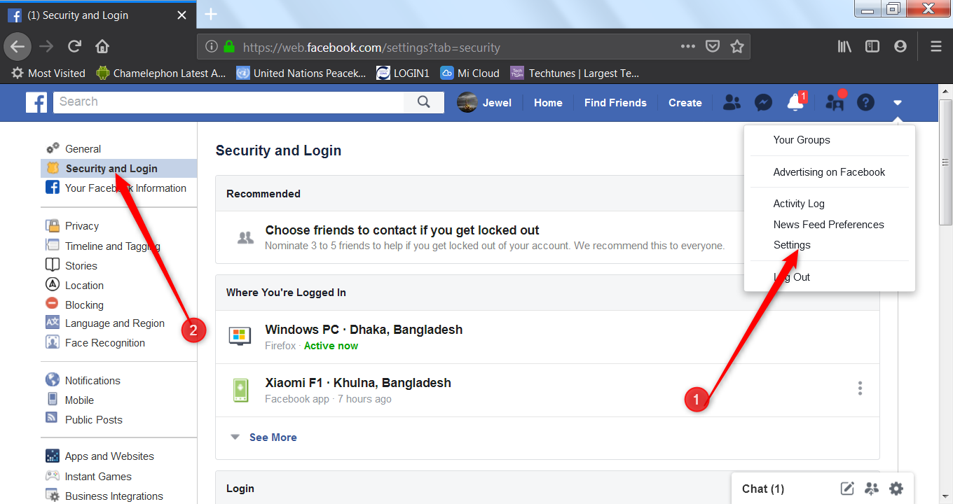 এজন্য Settings>Security and Login এ যেতে হবে।