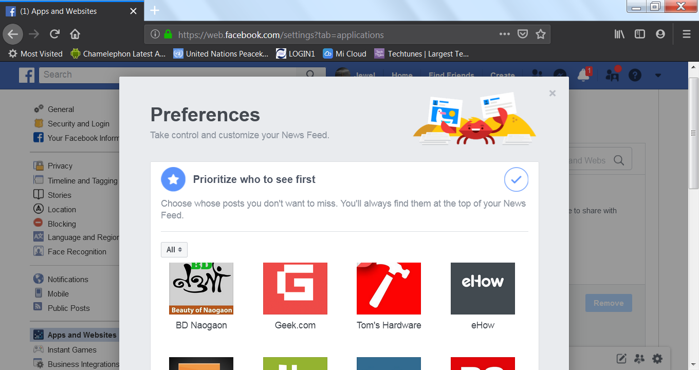 আপনার News Feed টি আপনার ফেসবুকের প্রত্তিছবি। সুতরাং এটি আপনি পরিষ্কার রাখতে ভালবাসেন। এজন্য আপনাকে ক্লিক করতে হবে Ellipsis Menu>News Feed>সবার উপরে বাম পাশে ড্রপ-ড্রাউন মেনু থেকে সিলেক্ট করুন> Edit Preferences। পপ আপ মেনু থেকে সিলেক্ট করুন কার পোস্টগুলো আপনি আগে দেখতে চান সেজন্য Prioritize who to see first এবং ব্যক্তি বাছাই করুন। এছাড়াও আপনি পেজও সিলেক্ট করতে পারেন।