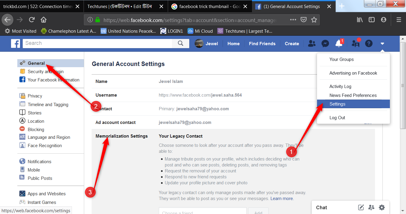 মানুষ মরণশীল। প্রতেক কেই মৃত্যুর স্বাদ গ্রহণ করতে হবে। জনাব মার্ক সাহেব ব্যপারটি খেয়াল রেখেছেন। এজন্য আপনাকে ফেসবুকের Legacy Contact ম্যানেজ করতে হবে। আপনি যাকে উত্তরাধিকারী করে যাবেন, তিনি আপনার ফেসবুকের প্রোফাইল এর জন্য পিন টিউন করতে পারবেন, নতুন ফেন্ড রিকোয়েস্ট রেসপন্স করতে পারবেন, আপনার ফেসবুক প্রোফাইল পিকচার ও কভার ফটো আপডেট করতে পারবেন, ফেসবুক ডাটা ডাউনলোড করতে পারবেন। এজন্য আপনাকে Settings>General>Materialization Settings>Edit গিয়ে পছন্দমত ব্যক্তিকে সিলেক্ট করুন।